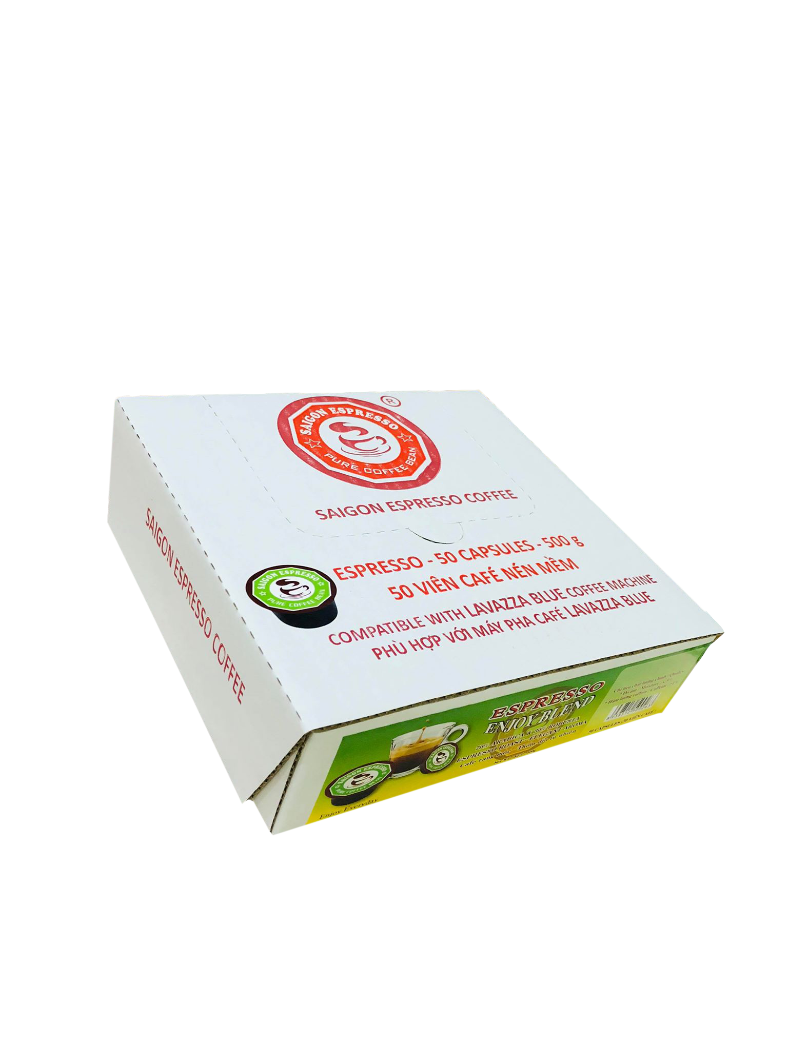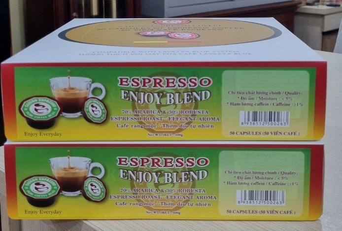 The Capsules Coffee – Enjoy Blend is a traditional roasted coffee, mixed with a ratio of 30% Robusta and 70% Arabica to produce a dark, light, sour coffee with a more passionate and attractive aroma. Coffee capsules are used for the Lavazza Blue machine.