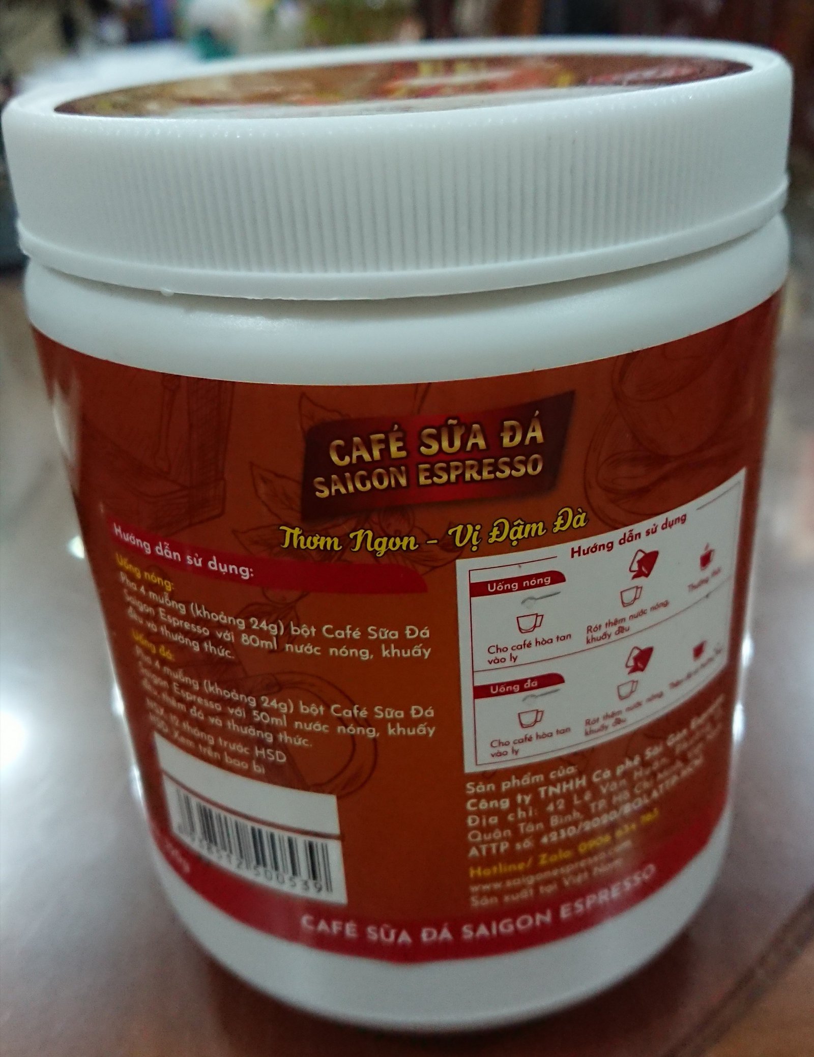 – Uống nóng : Pha 4 muỗng (khoảng 24g) bột Café Sữa Đá Saigon Espresso với 80ml nước nóng, khuấy đều và thưởng thức.